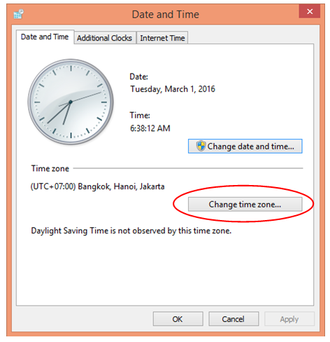 Langkah awal sebelum melakukan installasi Aplikasi Dapodik versi 2016, ada beberapa konfigurasi/setting yang perlu dilakukan pada komputer. Diawali dengan melakukan setting time zone, maka dipersilahkan melakukan konfigurasi waktu pada PC atau Laptop. Ikuti langkah berikut ini:1. Klik waktu yang berada pada taskbar, kemudian pilih “Change date and